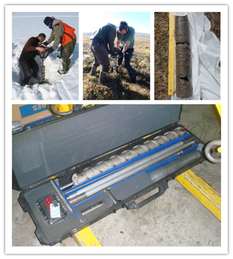 凍土冰芯取樣器是一種用于北極研究?jī)鐾梁捅娜⌒救悠?。它被用?lái)取2到3米深的冰凍物質(zhì)(凍土或冰)的巖芯。該套取樣器由切割鉆頭、鉆具、延長(zhǎng)桿、汽油發(fā)動(dòng)機(jī)和相關(guān)配件組成。鉆具和鉆頭由特殊合金做成,質(zhì)量輕、強(qiáng)度高且耐磨,切割鉆頭和鉆具之間,既連接緊密,又拆卸方便。